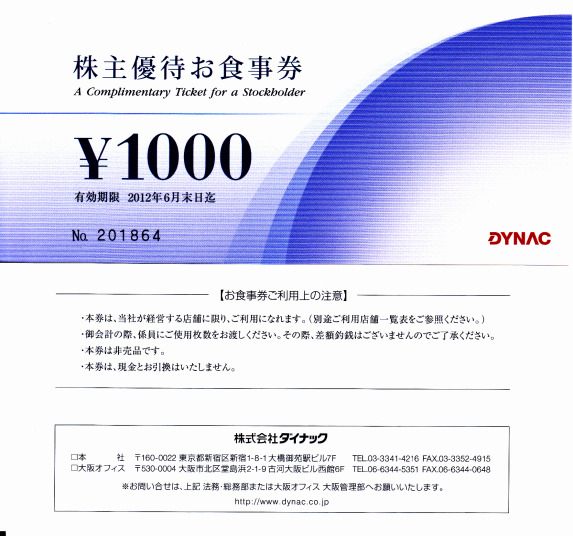 | 130 | 3-69 | 9477 | 角川HD(0.1) | 3 | 100 | 平成23年6月25日(土) 10時 「日輪の遺産」映画同伴1枚。軽食あり、 東京都 東京會舘 |