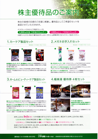 | 199 | 3-138 | 9616 | 共立メンテナンス(8) | 3.9 | 100 | 平成23年6月28日(火) 10時 お土産なしの明記有 東京都 秋葉原ダイビル |